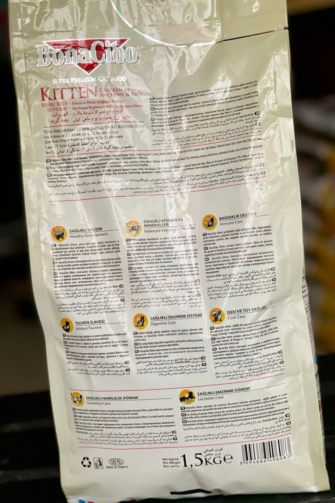 Enriched with essential vitamins, minerals, and antioxidants, Bonacibo Kitten helps develop strong muscles, a shiny coat, and a robust immune system. The blend of chicken and anchovy delivers an irresistible taste that even the pickiest kittens love.